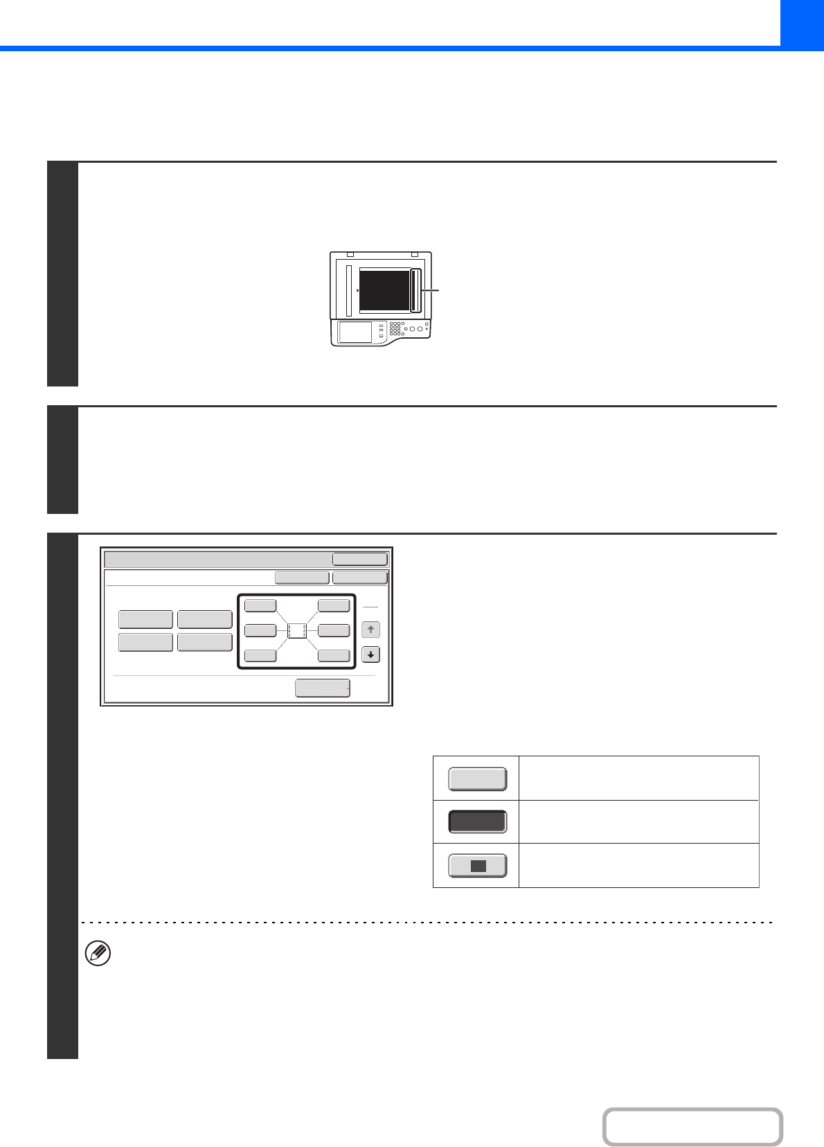 • "Date" and "Page Numbering" cannot be selected in multiple positions. If the [Date] key or [Page Numbering] key is