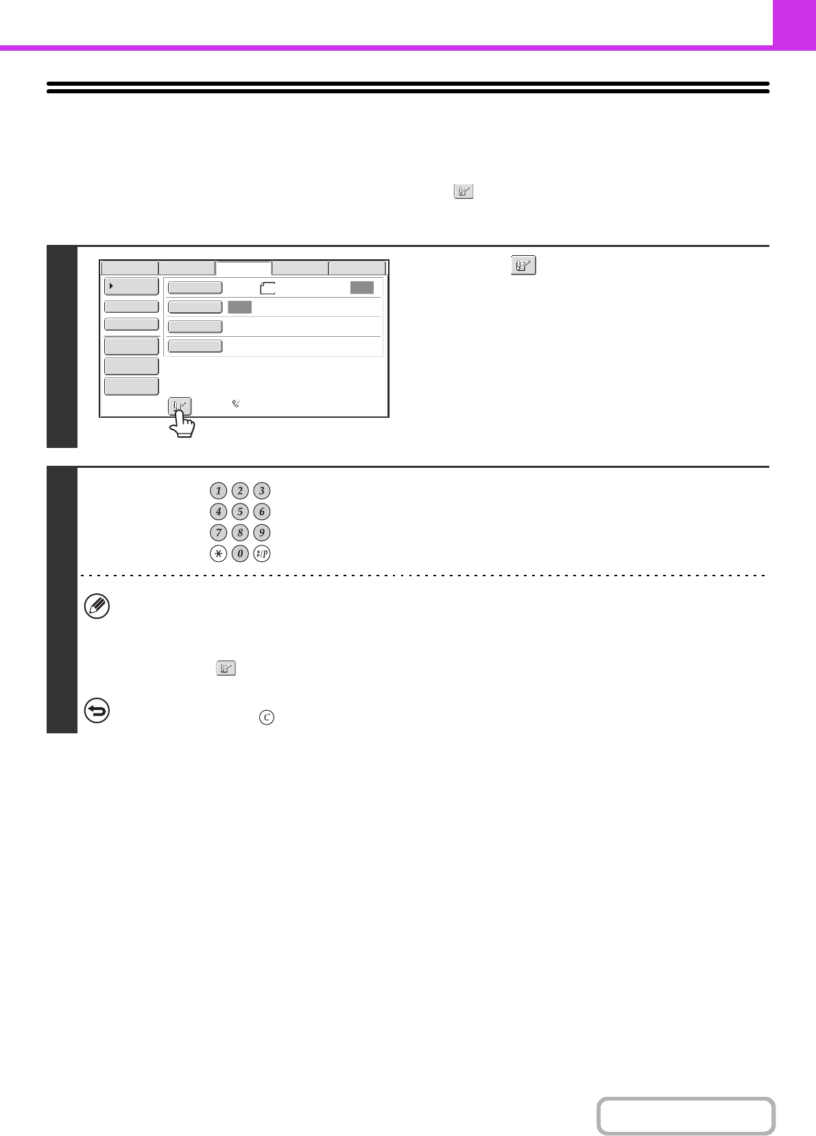 • If you do not know the search number, print the one-touch address list using "Sending Address List" in the system