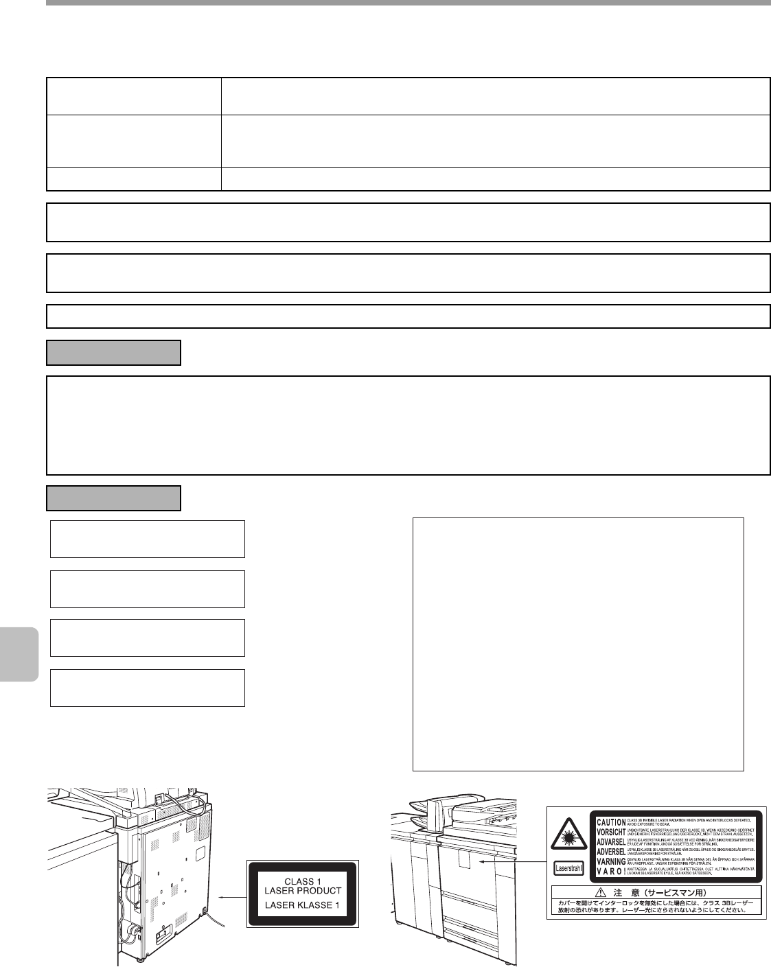 the equipment does not produce hazardous laser radiation. For your safety, observe the precautions below.