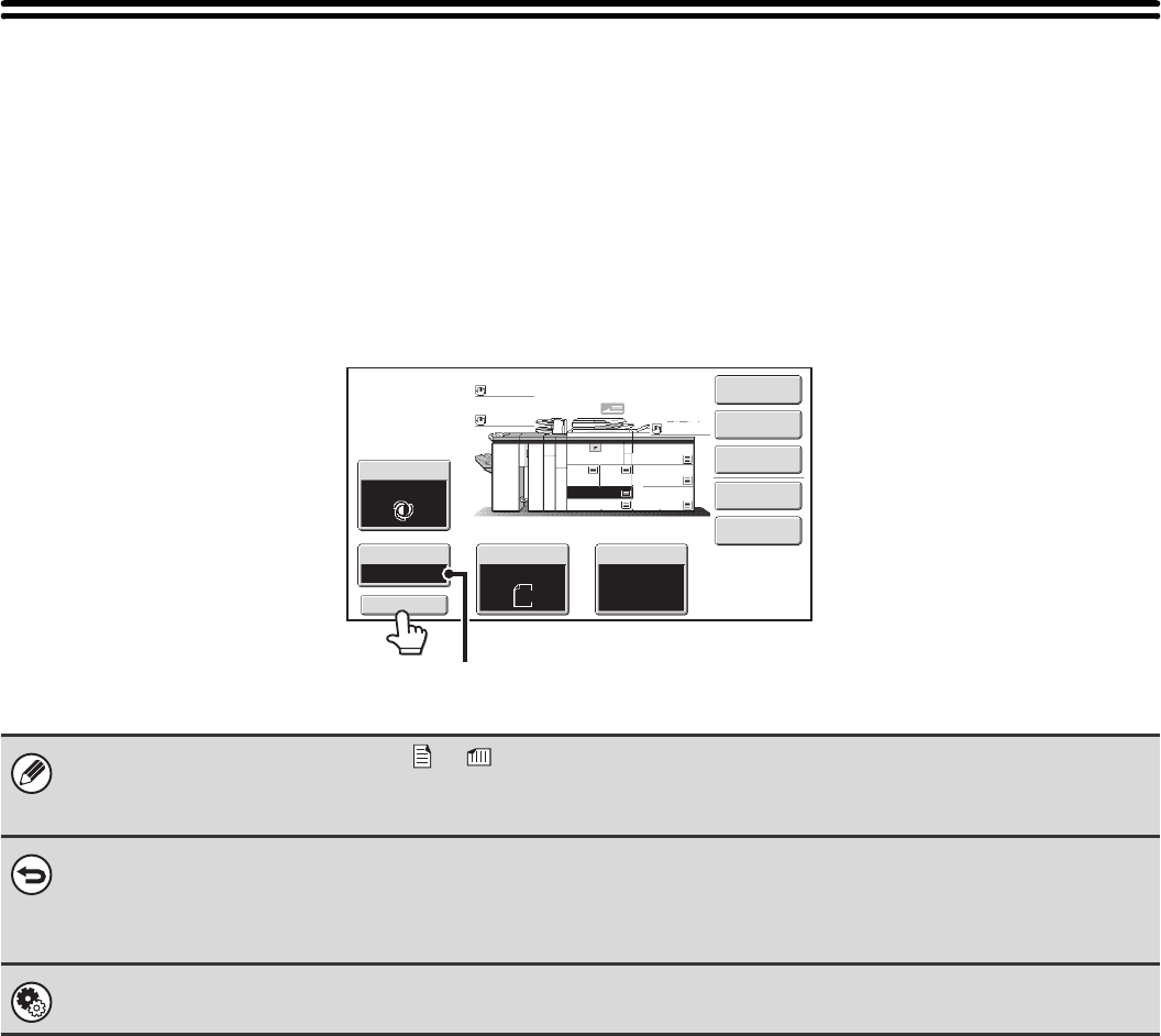 To return the ratio setting to 100%, touch the [Copy Ratio] key to display the ratio menu and then touch the [100%] key.