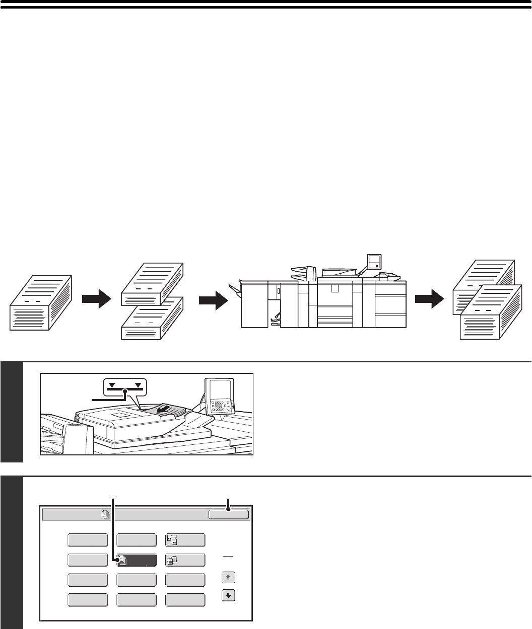 When copying a very large number of originals, this function allows you to divide the originals into sets and feed each