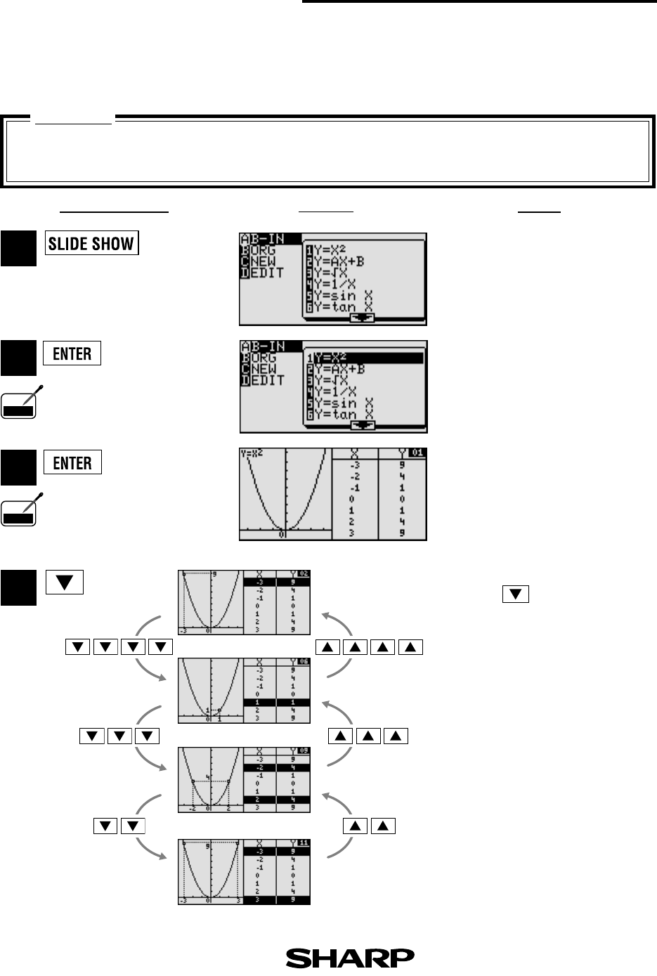 Use the built-in slide show of y = x