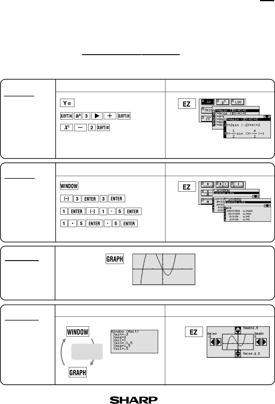 Following outlines graphing procedures and indicates the steps where Sharp's unique functions can
