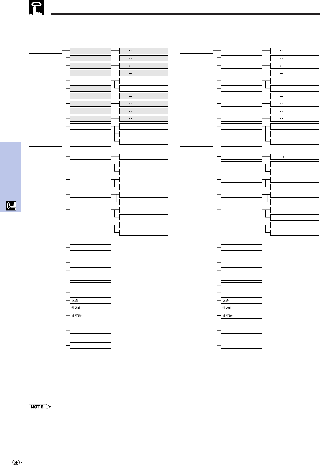 • The darkened items in the above chart will be displayed in gray and can not be selected.