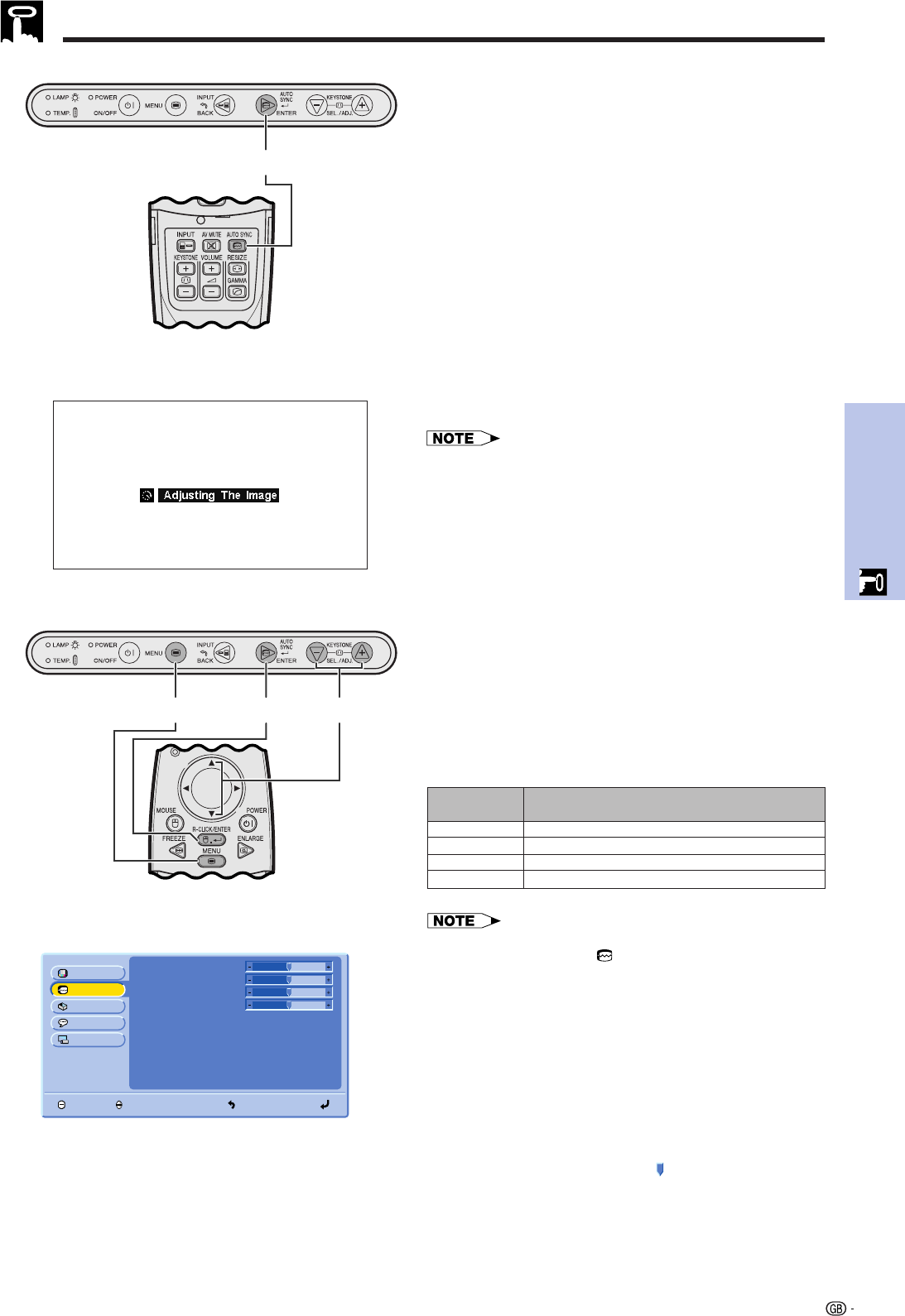 Computer Image Adjustments (INPUT 1 (RGB) mode only)