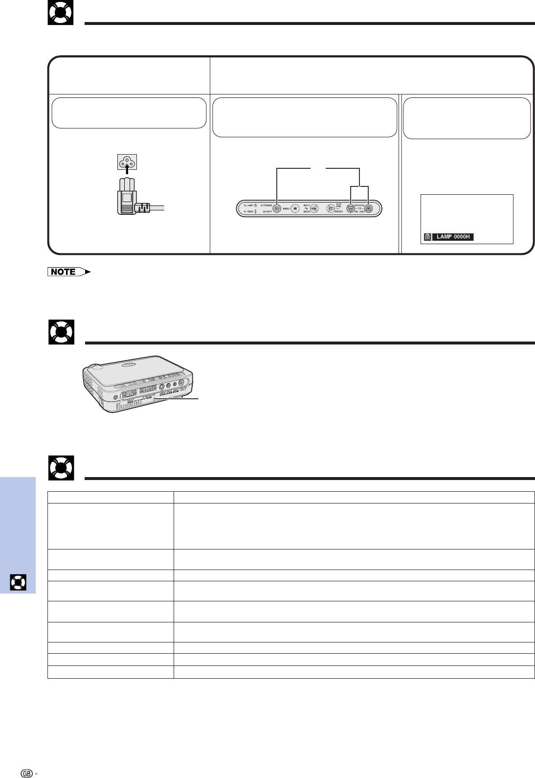 • Cables incorrectly connected to the rear panel of the projector. (See pages 13–17.)
