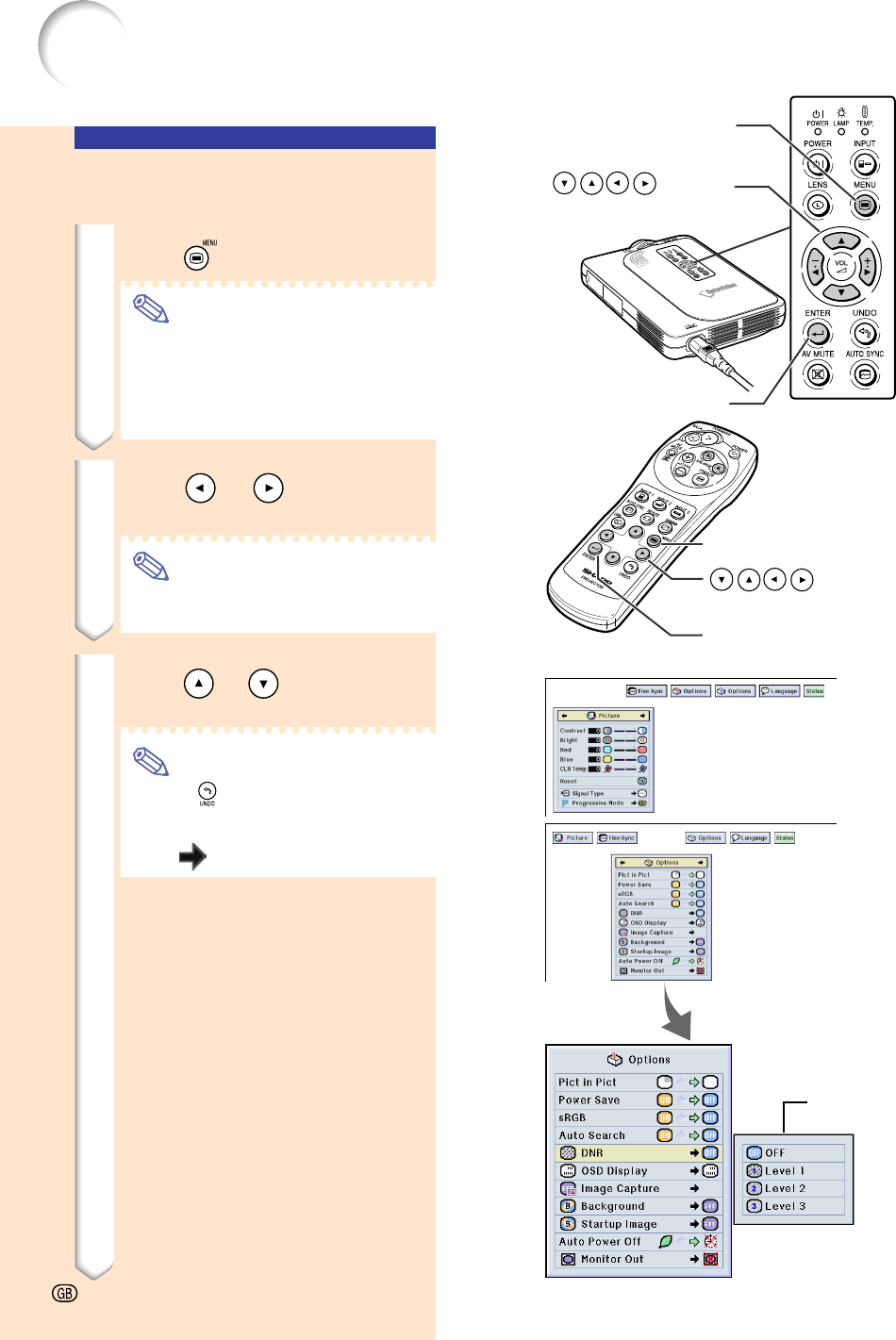 • The “Picture” menu screen for the