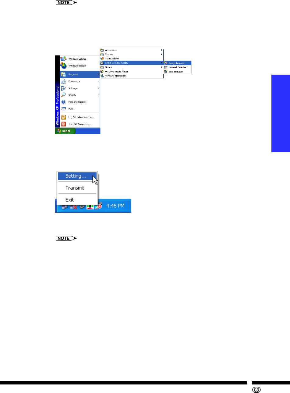 Click the “Start” menu, “Programs”, “Sharp Wireless Reality”, and then