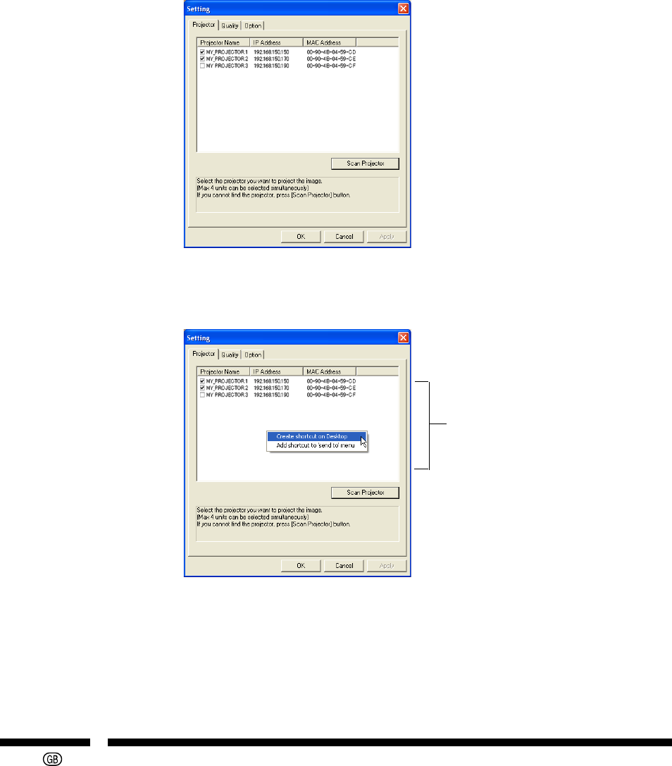 Right click on the projector list in the “Projector” tab, and click “Add