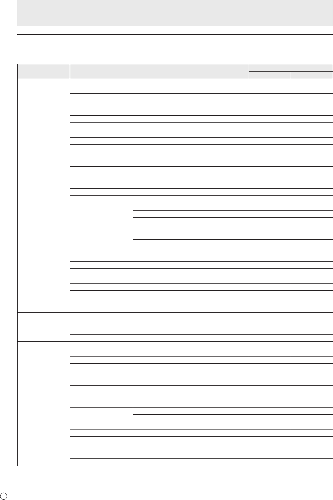 ○: Item is available, -: Item is not available.