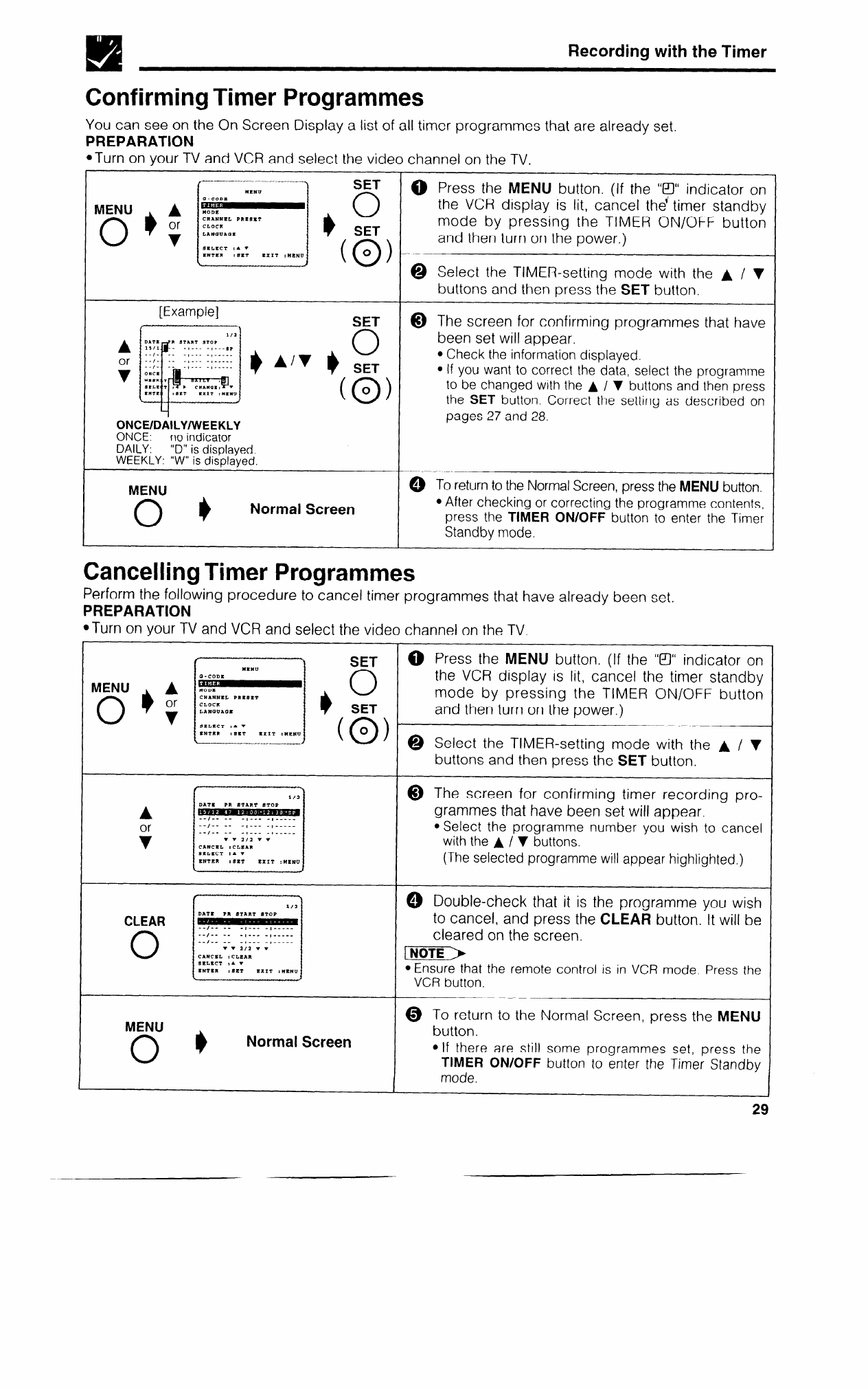 You can see on the On Screen Display a list of all timer programmes that are already set.