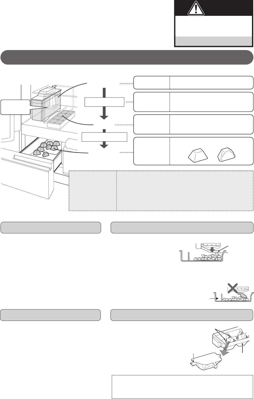 • Use the shovel when taking ice cubes out or make