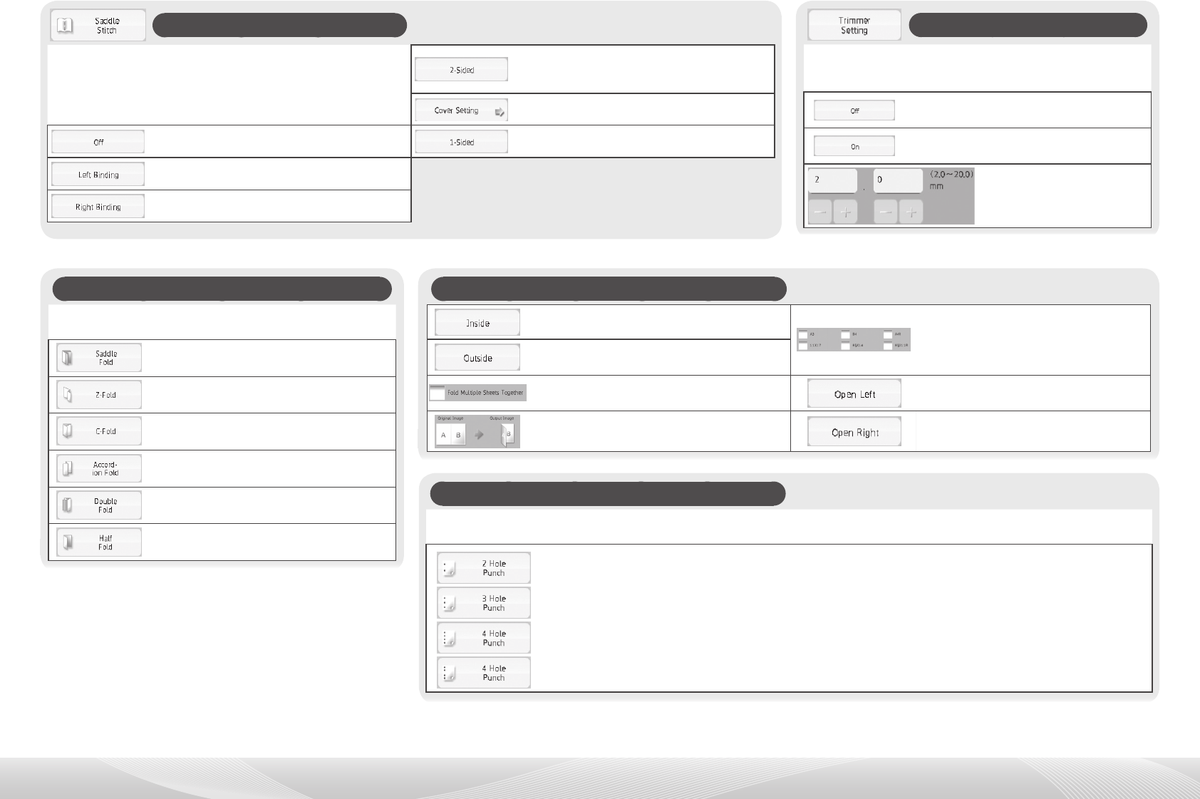 Select this option to fold multiple sheets together Folds paper for left binding during output