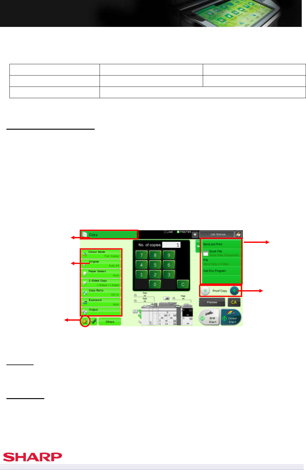 Our conventional models have various hard keys: power source, energy saving, home, copy start (both B/W and