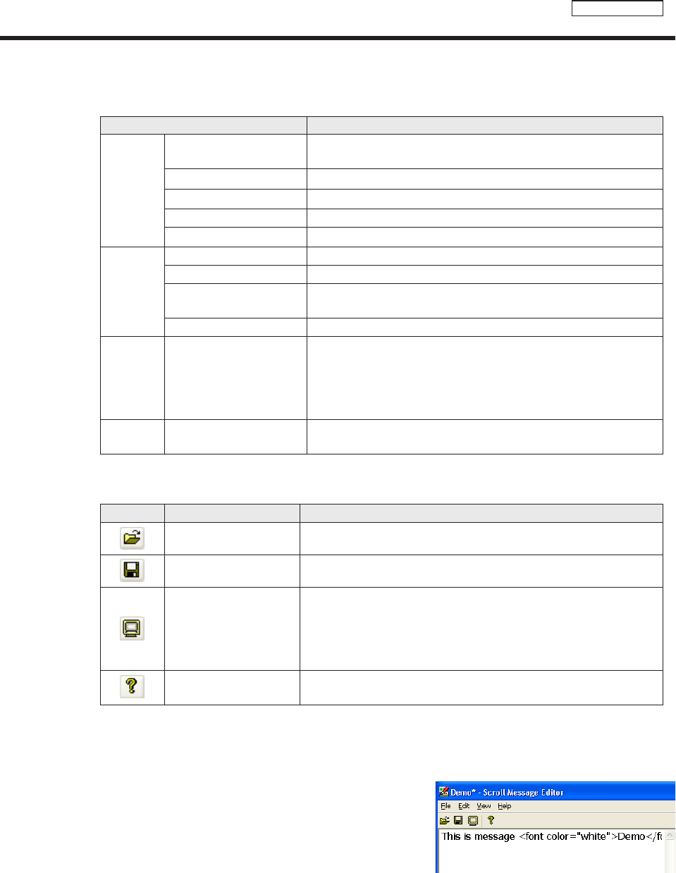 Undo Undoesthelastactionperformedinthe“Scrollmessageeditbox”.