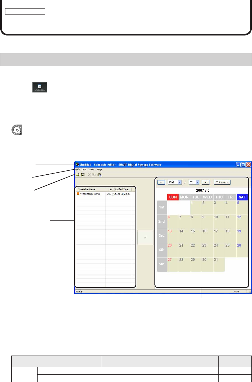 Programs],[SHARPDigitalSignageSoftware],[Tools],andthen[ScheduleEditor].