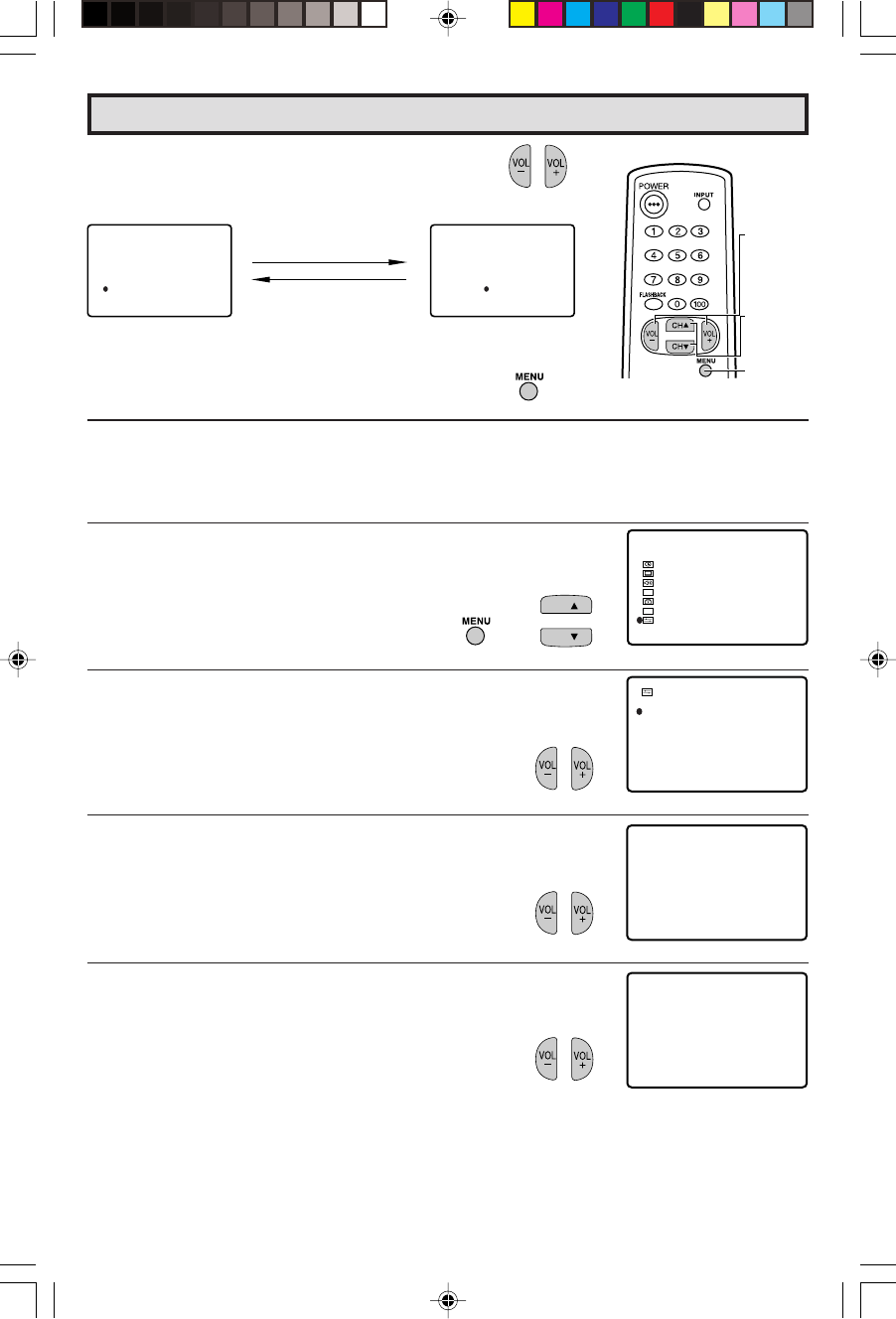 4 Press VOL +/– to access the BLUE SCREEN select screen.