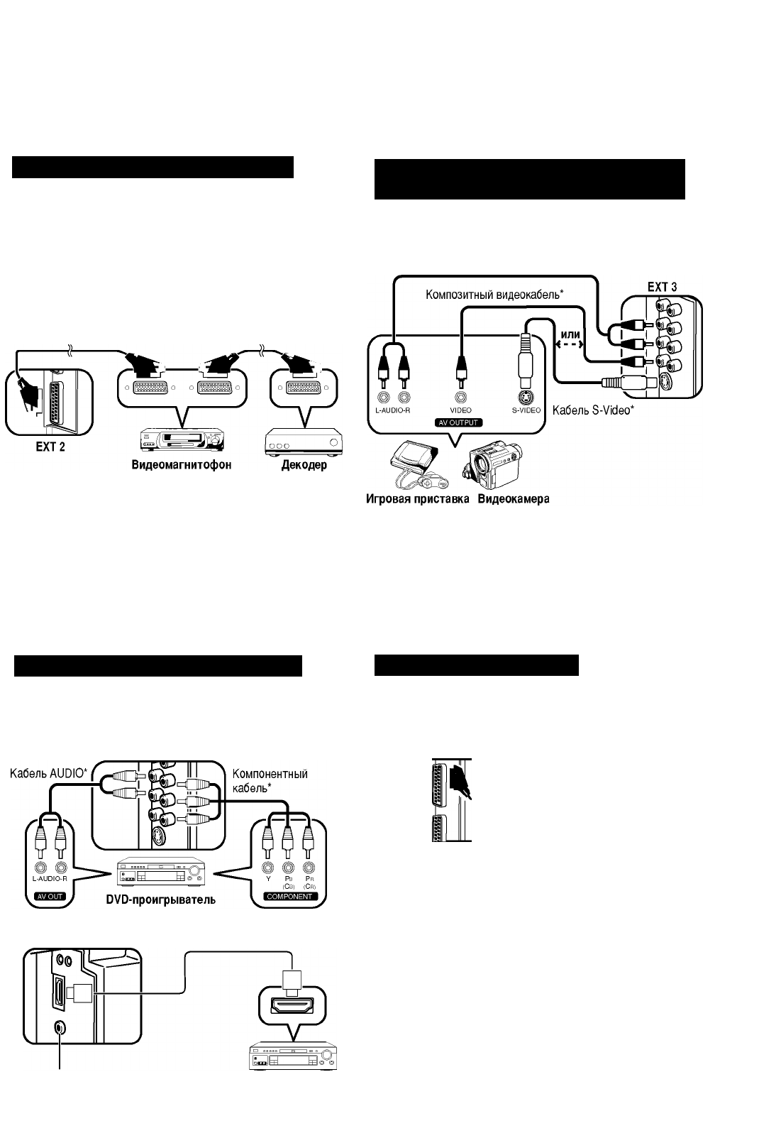 Можно использовать гнезда ЕХТ 3 или 4 (HDMI) при