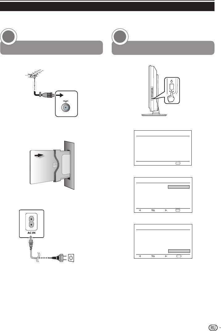 Следуйте нижеследующим инструкциям при использовании телевизора впервые. Некоторые шаги
