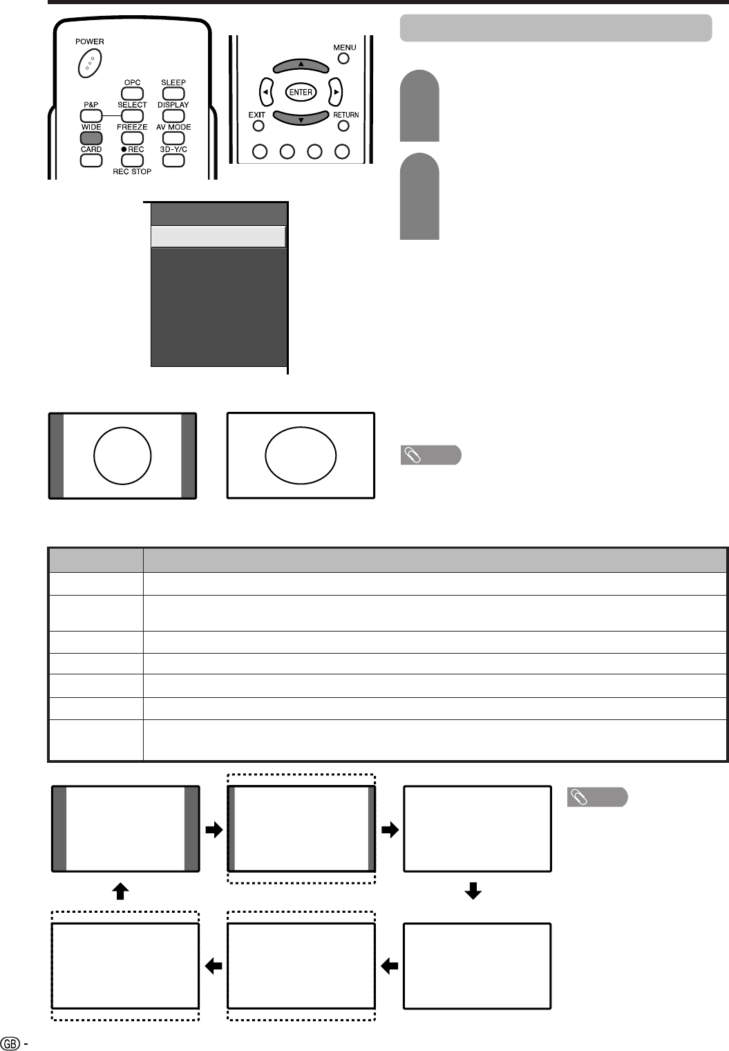 WIDE mode (for TV/AV input mode)