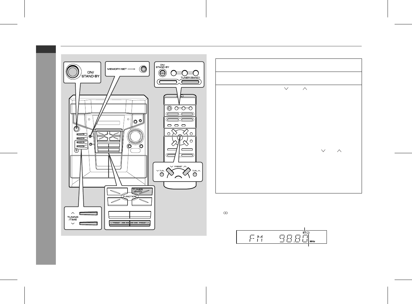 Die TUNER (BAND)-Taste drücken, so daß die "ST"-Anzeige auf-