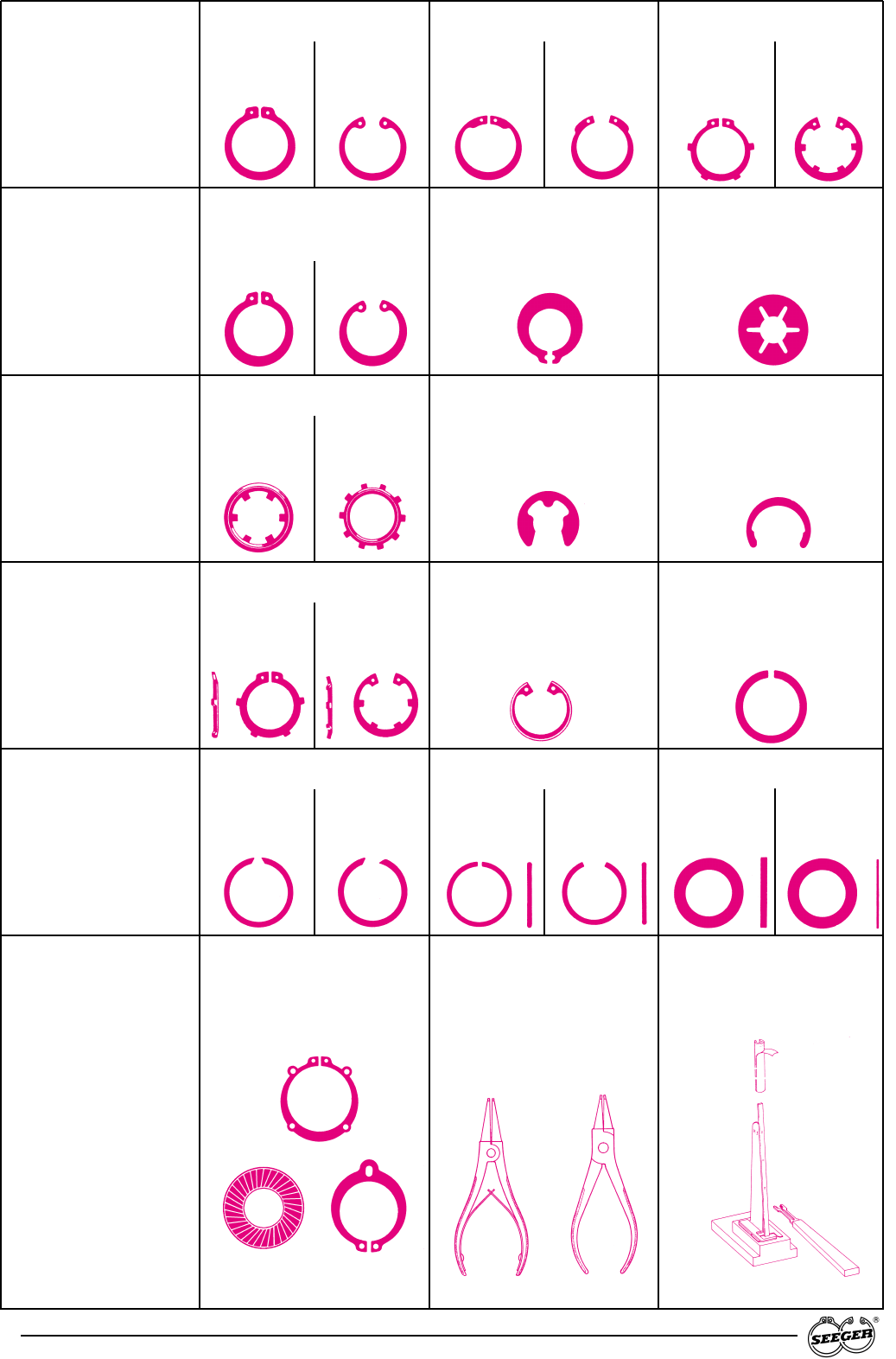 Bezeichnung / Designation Seeger-L-Ringe / Seeger L rings Keil-Ringe / Bevelled rings Seeger-Sprengringe / Seeger circlips