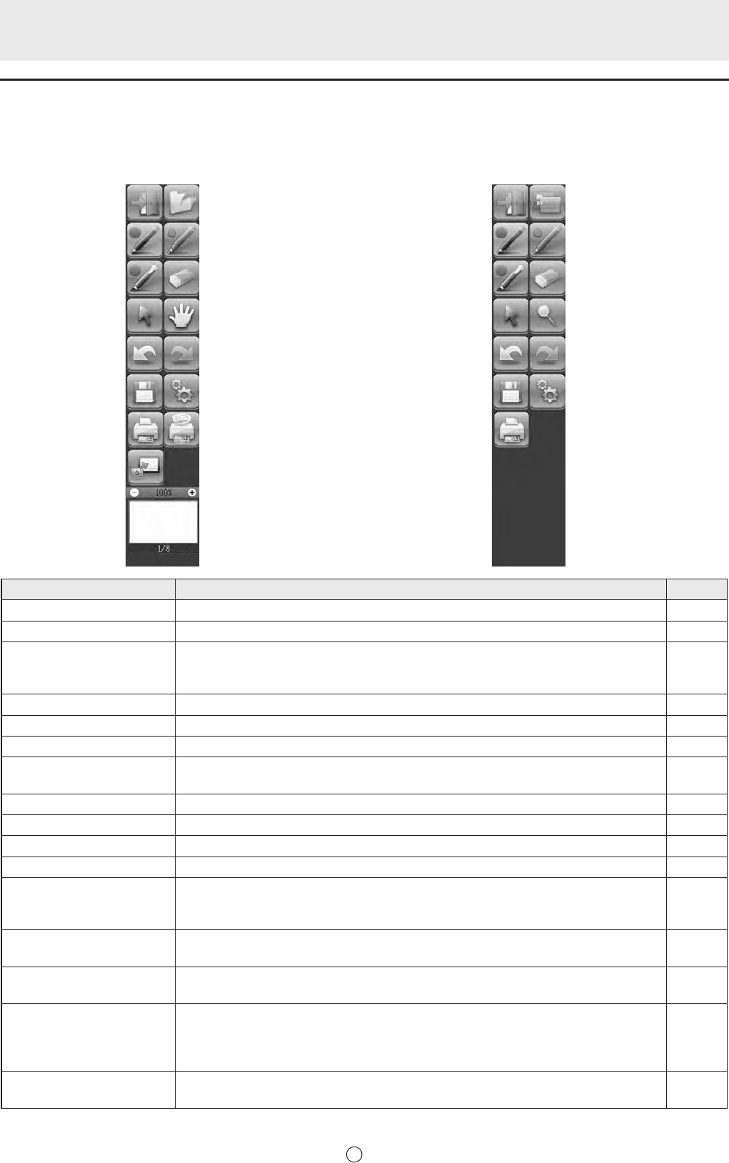 Lasfuncionesdelabarradeherramientassemuestrancomobotones.Toqueunbotónparaseleccionarlafuncióndeesebotón.