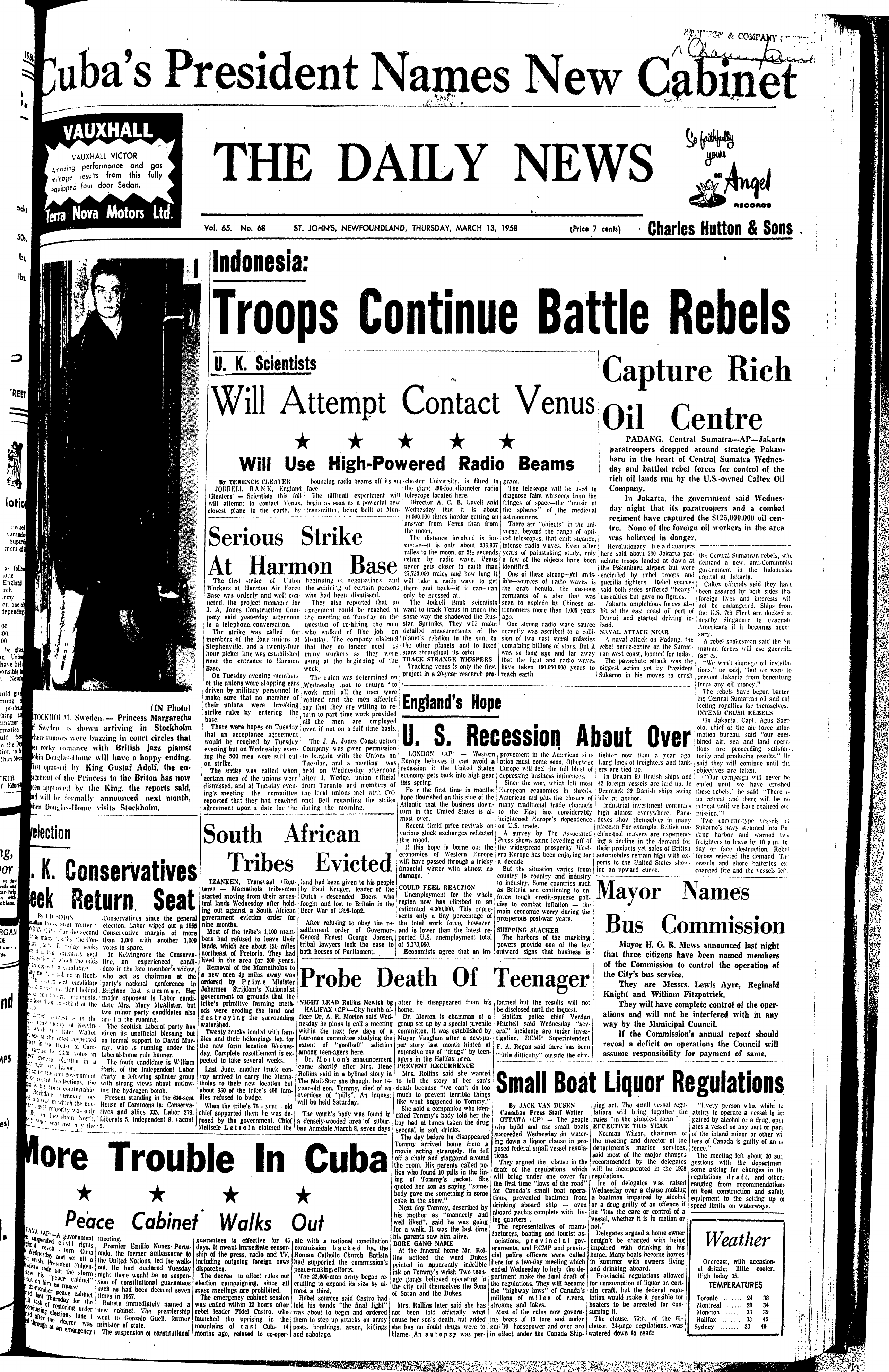• • • W: r's Heated Apply ~ New >wer fmtc!l NEWS, ST. JdHN'S, NFLD., THURSDAY, MARCH 13, 1958 ,,.,.. __ KINSMEN a per BINGO SERIES R TO-D