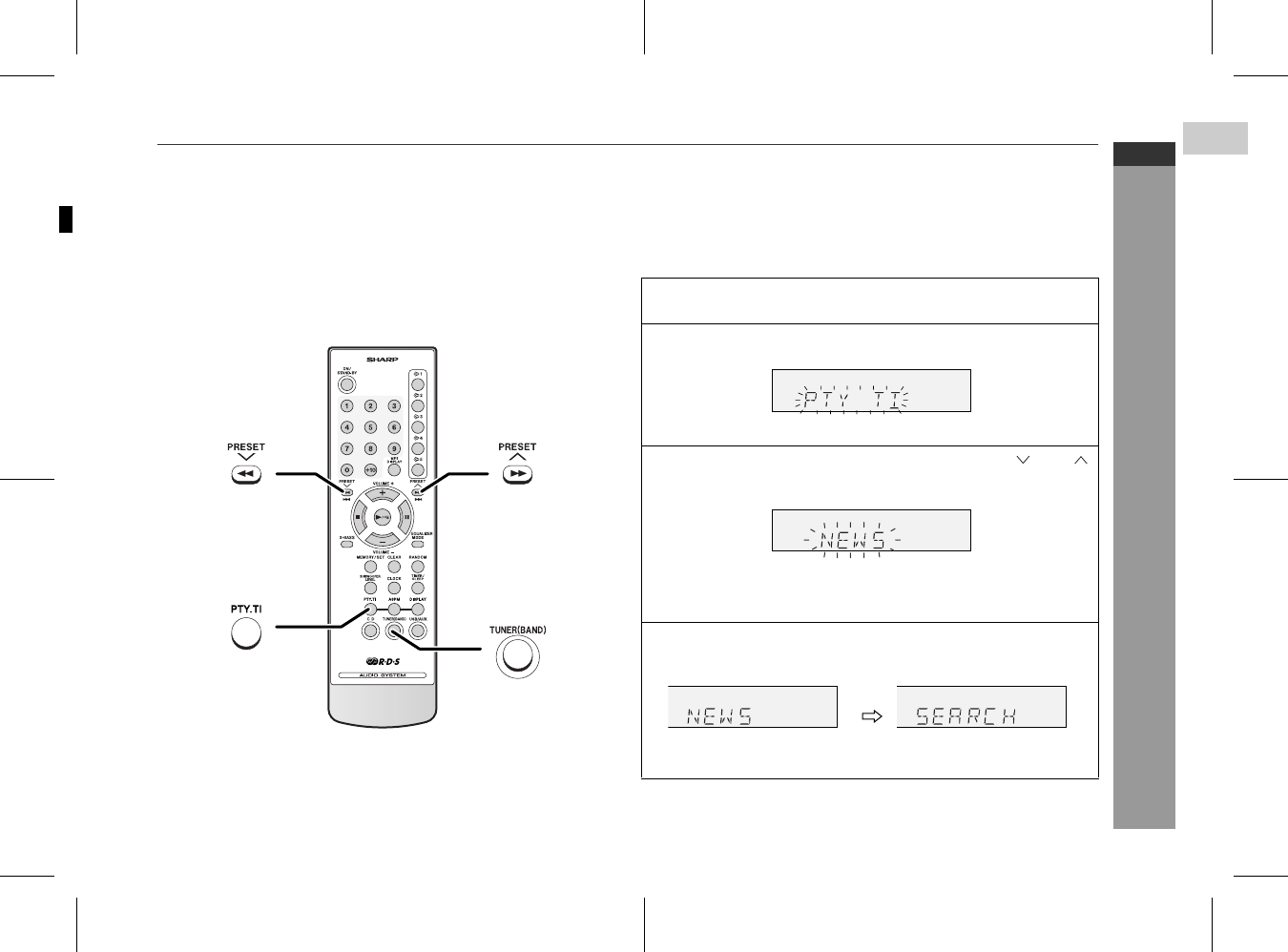 von 4 Sekunden), die PTY.TI-Taste noch einmal drücken.