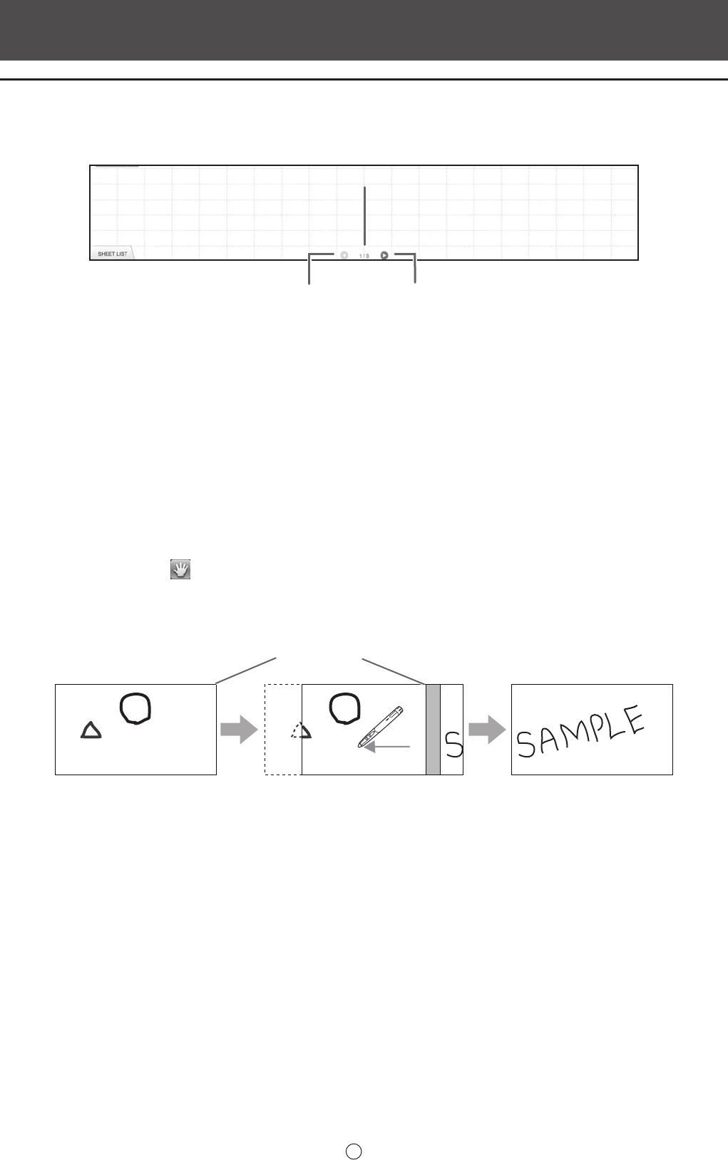 Pour changer la feuille, touchez la touche de navigation des feuilles située en bas de l’écran. Le numéro indiqué au centre est le