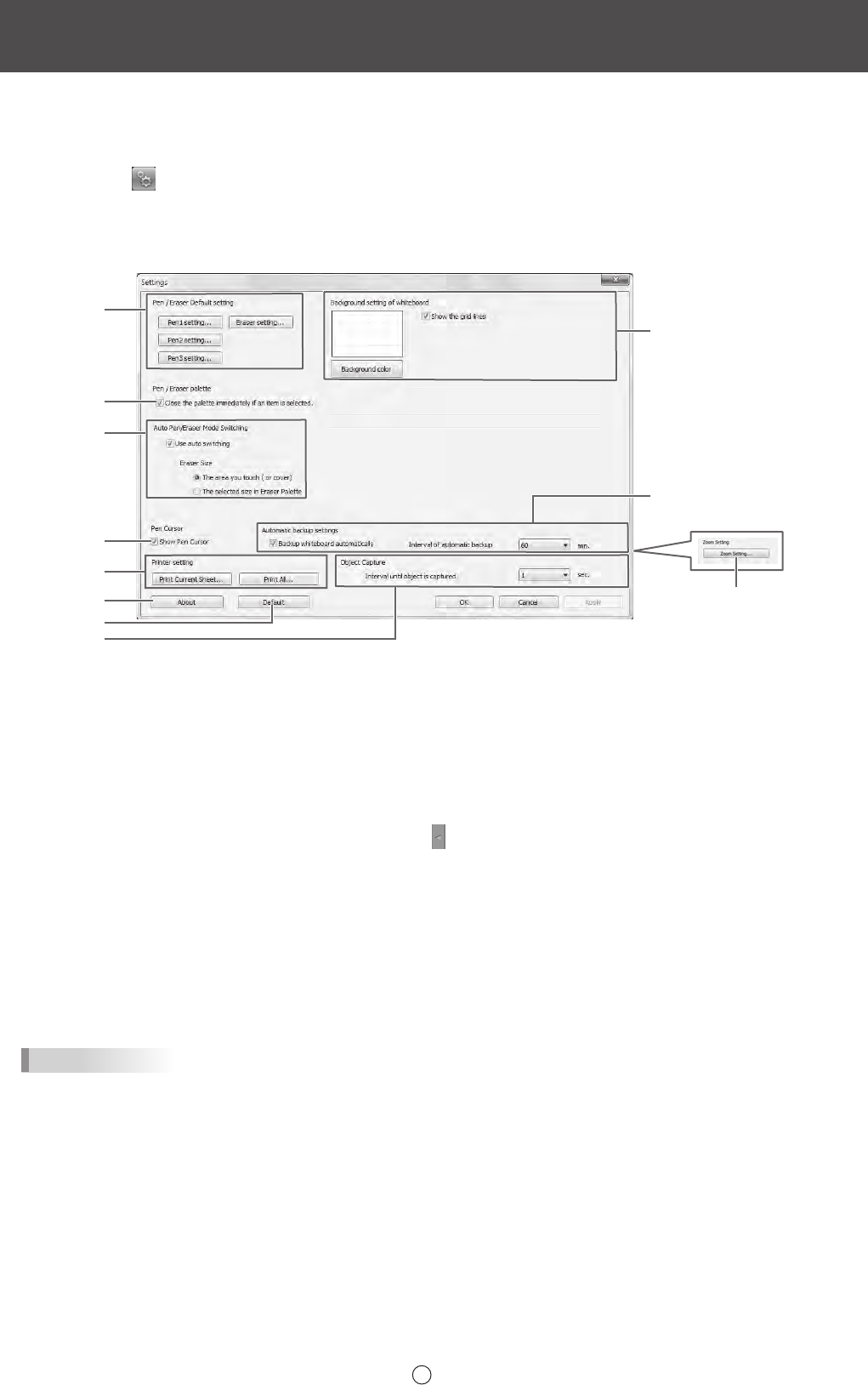 1. Toque el botón “Settings of SHARP Pen Software”.
