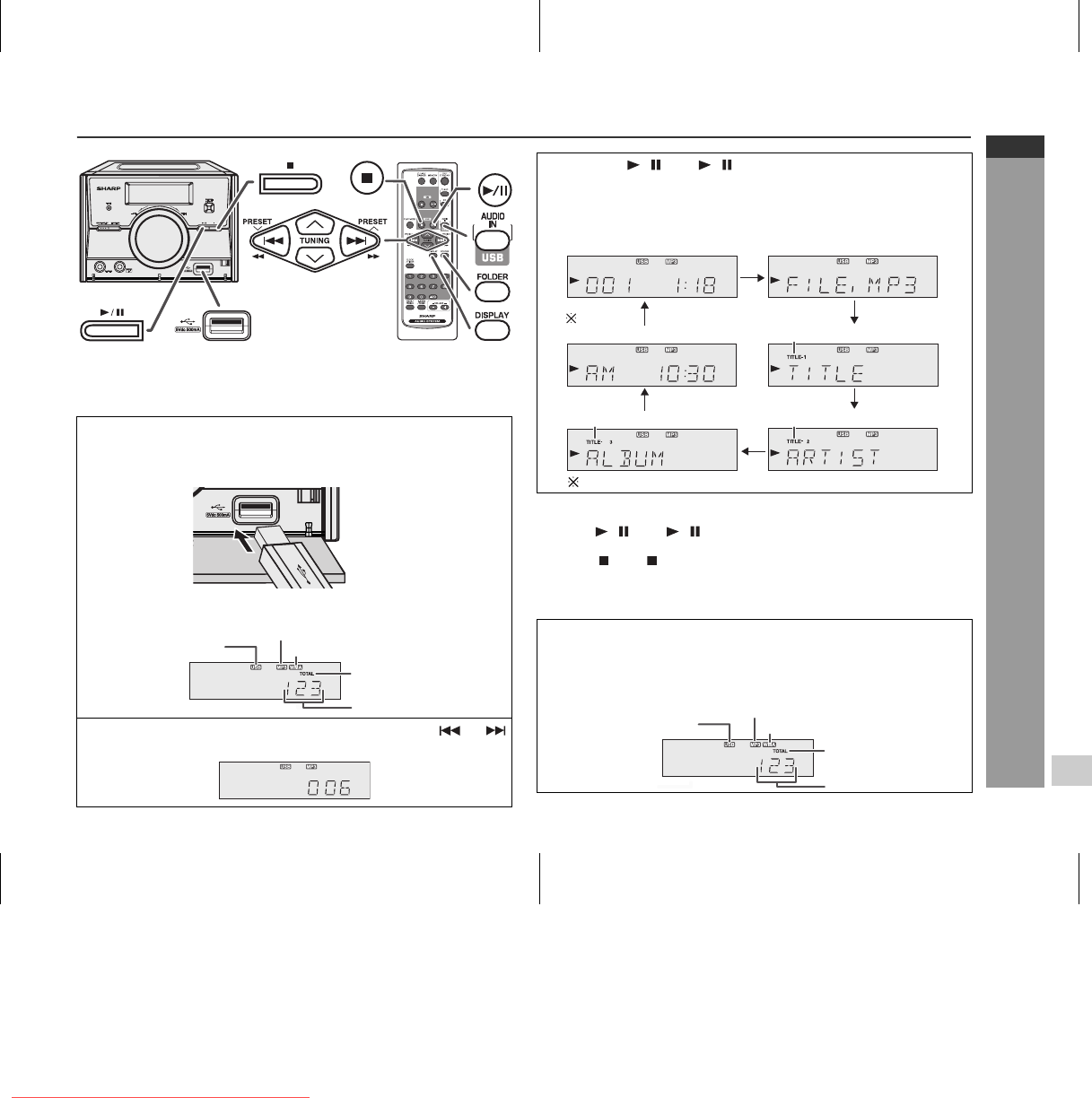 Title, Artist & Album name are displayed if they are recorded in the USB