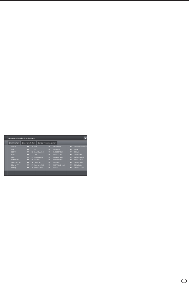 Zeigt an, welche Sender zum Verschieben, Löschen