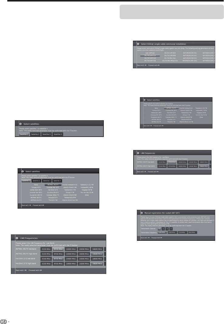 4 Select and adjust settings for DiSEqC single cable