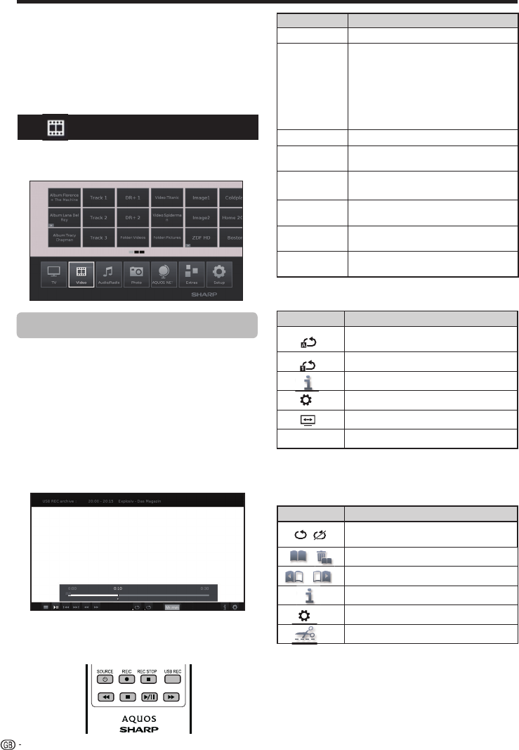 Symbols on the screen for video reproduction