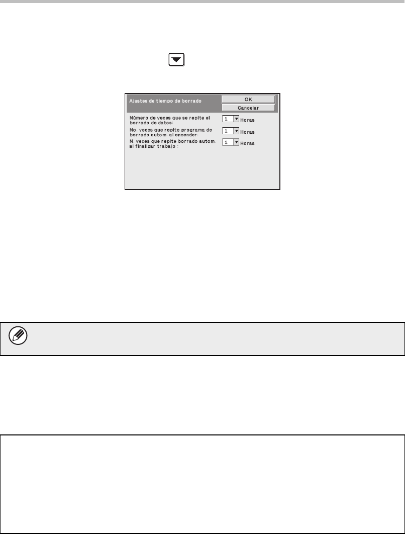 que desea que se repita el borrado de datos. Cuando finalice, seleccione la tecla [OK].